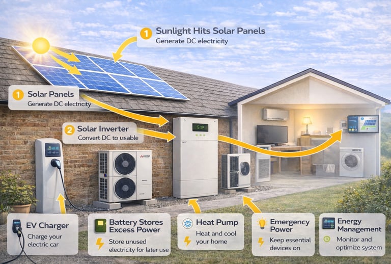 Together, these technologies create a more efficient, flexible, and cost-effective home energy system.